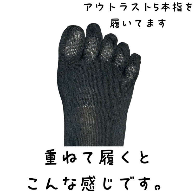 35℃の気温の中重ねばきするのは若干勇気がいりましたがやってみたら指と指が直接触れないので足がサラサラで気持ちいい、やみつきになりそうです!